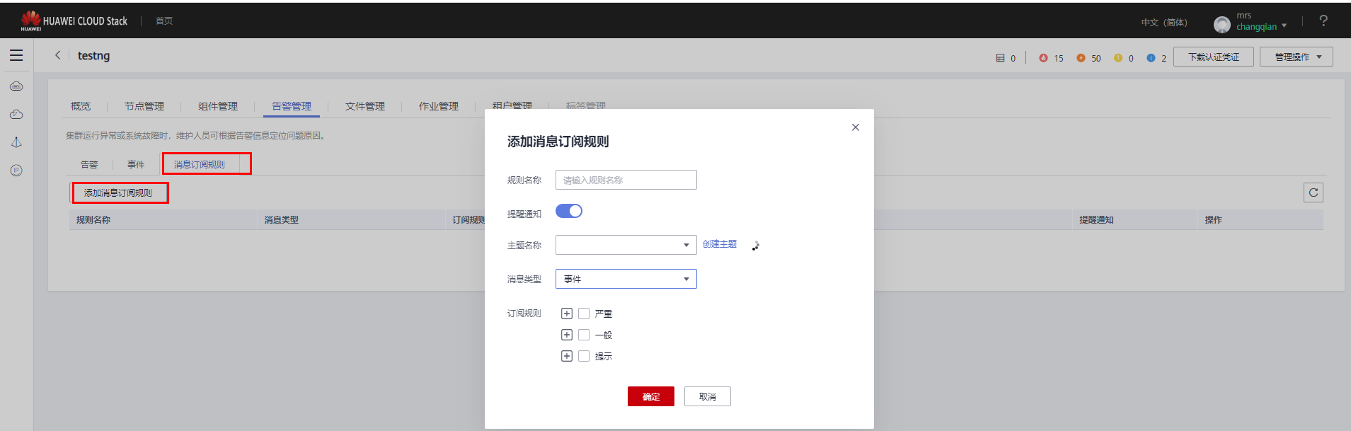 除此之外还支持消息订阅规则,用户可根据各自业务订阅不同类型的告警信息