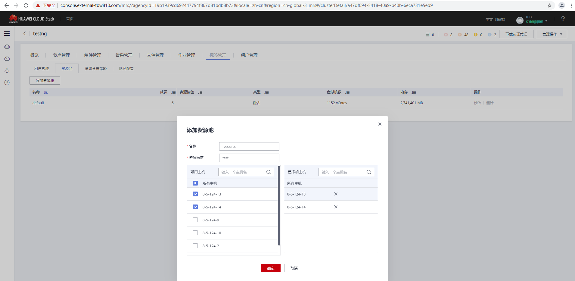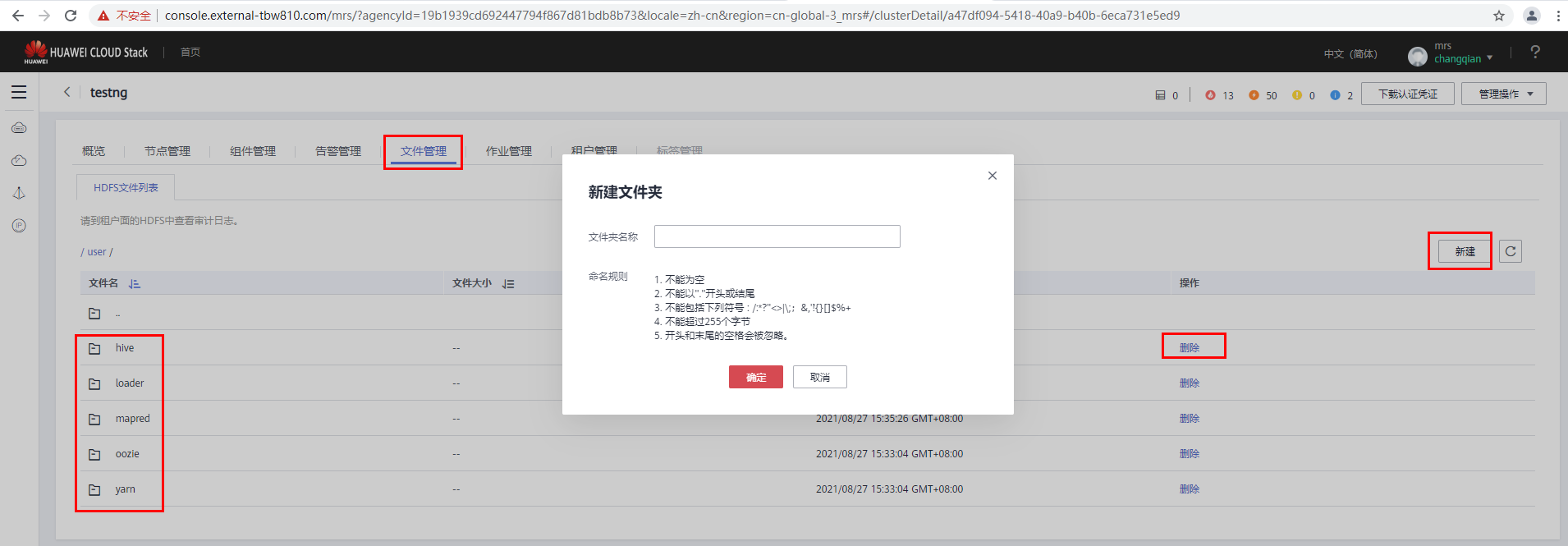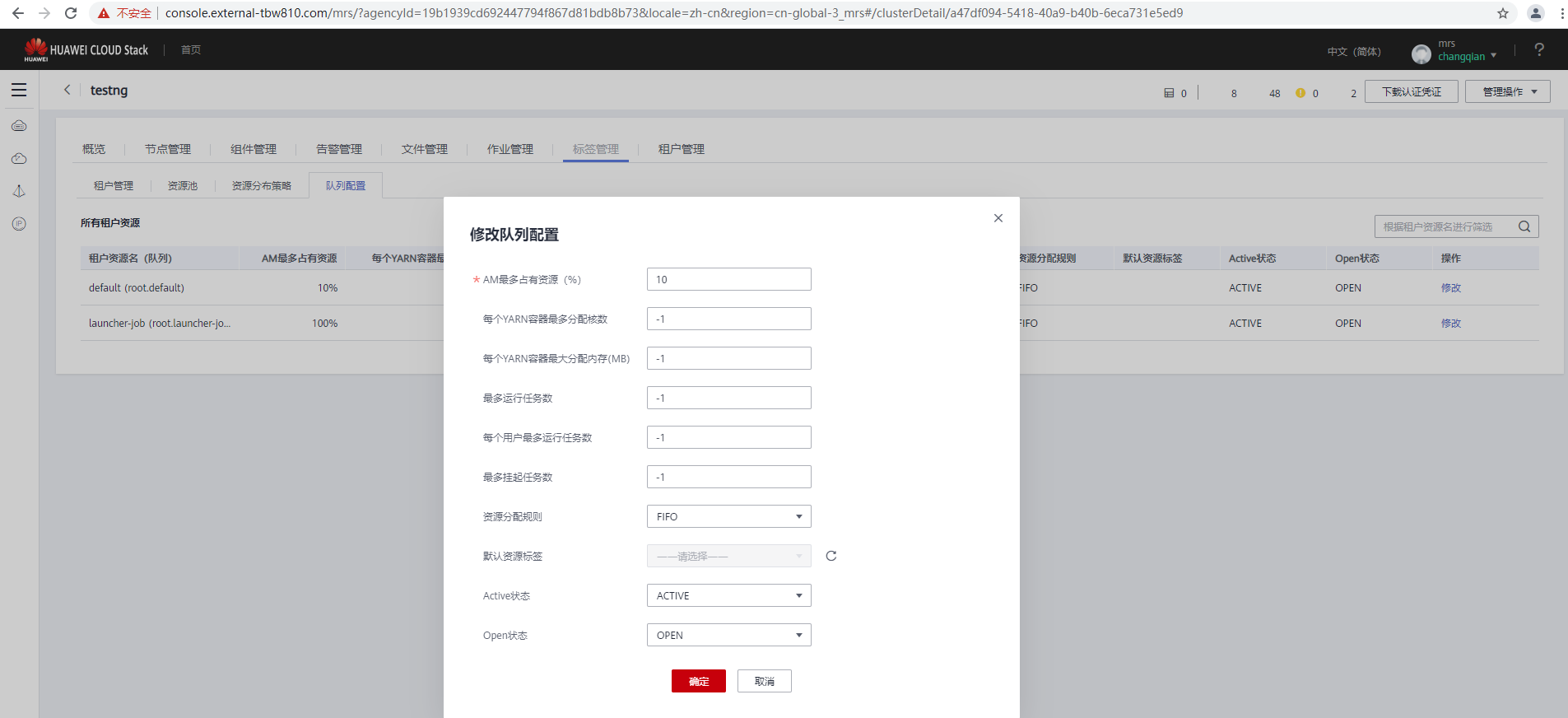 4 .2 、 使用“manage_admin”用户登录MRS管理控制台。