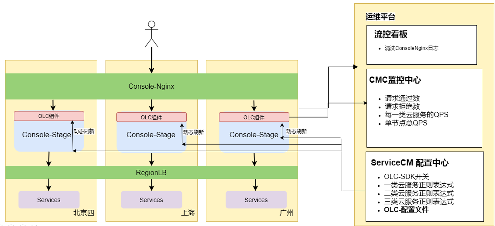 Console-Stage集成OLCFilter,实现单机流控,并根据服务类别进行流量控制,将服务分为四个类别,一类服务、二类服务、三类服务、other。具体算法是设置单机总容量和流控阈值。当达到阈值时,按比例进行流量控制。例如设置单机总容量是100,按总容量100QPS、给一类、二类、三类、other按照85:10:5:0分别分配流量。DWS属于一类,会分配按比例分配流量。当DWSConsole收到大流量时候,也需要有控制手段,以至于服务不会中断。