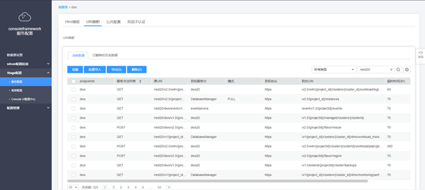 2.导入新增的URI,通过配置URI将DWSConsole控制台的接口转发到api网关