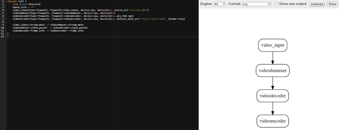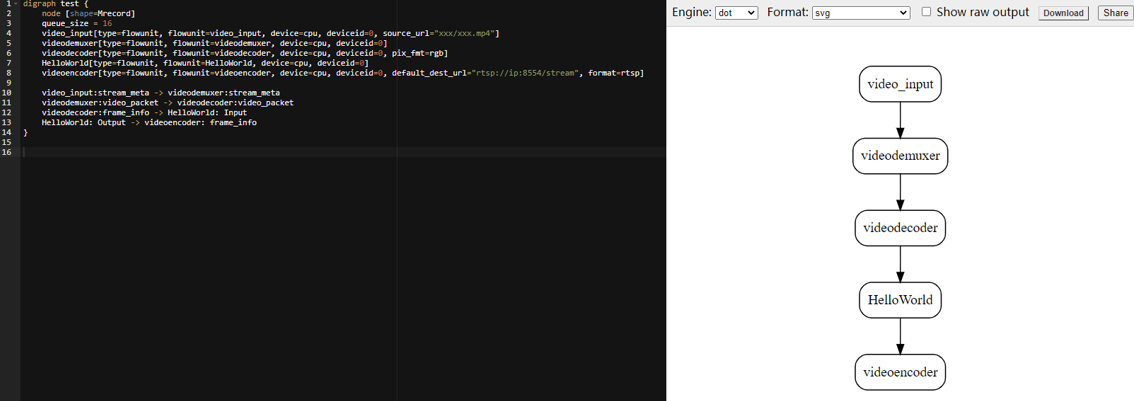 4. ModelBox使用graphviz格式描述流程图,将流程图定义内容拷贝到graphhiz 工具 中进行查看。