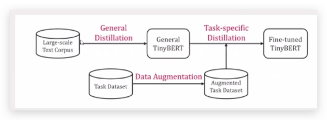 • 提出了- -种新的两阶段学习框架,该框架在预训练和微调阶段进行Transformer蒸馏,保证了TinyBERT既能吸收教师模型的一般领域知识,又能吸收教师模型的任务特定知识。