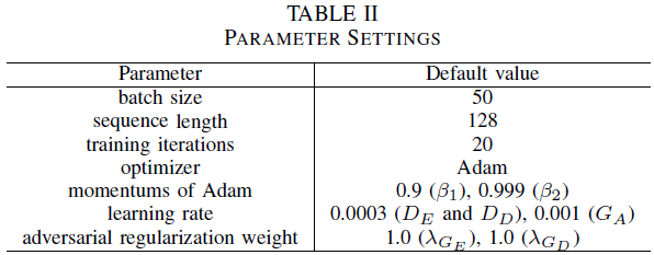 下表是作者公布的参数设置