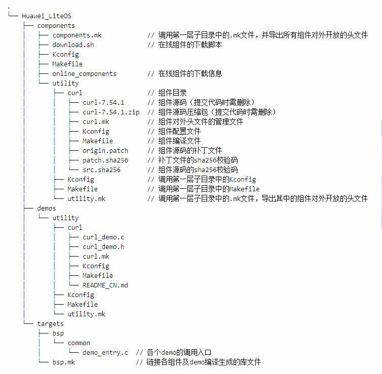下面以在线组件curl为例,对Huawei LiteOS的组件构成及组件管理进行详细说明。