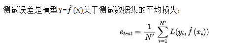 当损失函数是0-1损失时,测试误差就变成了常见的测试数据集上的误差率: