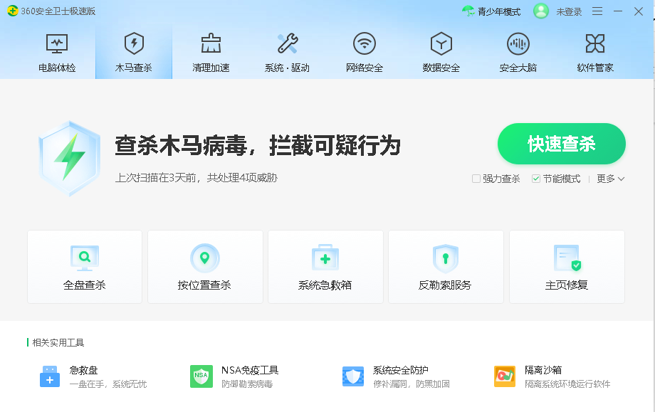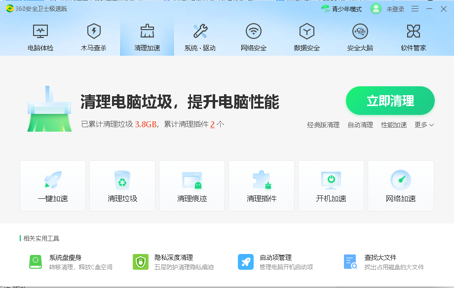 我写这篇文章时,是第二次使用这个360安全卫士极速版,上一次是几天前了。