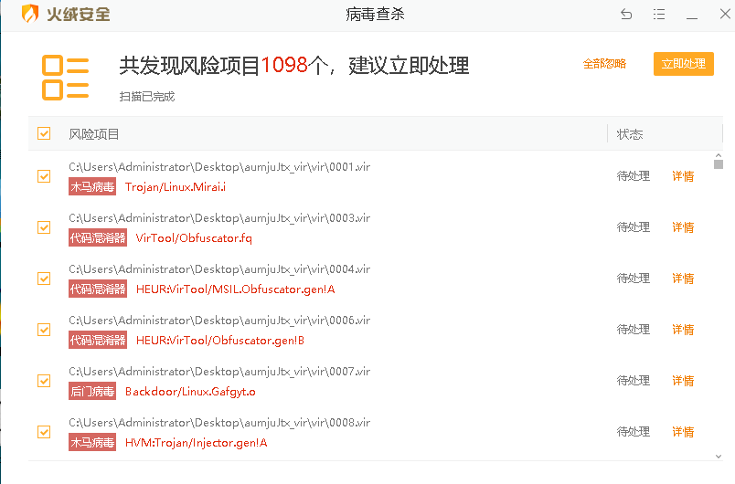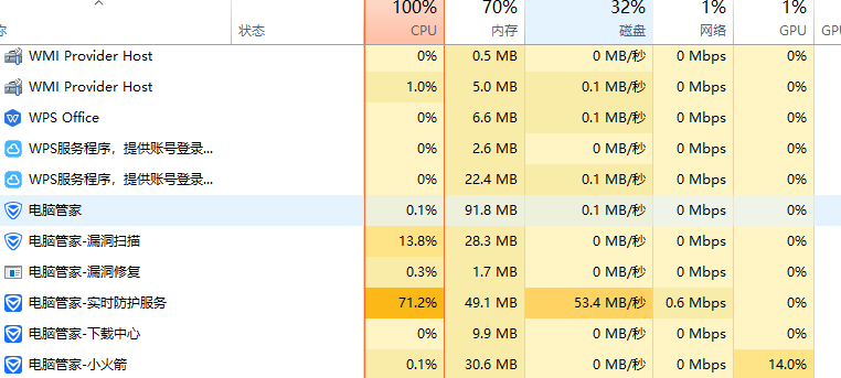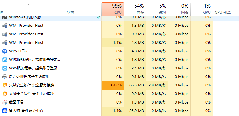 我们可以看到火绒占用的CPU非常高,而且查杀时间也非常长,达到了15分钟以上。