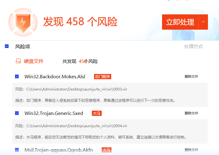 腾讯电脑管家查杀时占用的资源也很多,但是查杀时间比360安全卫士极速版还快,只有3分钟左右,但是查杀效果不是很好,只发现了458个风险。