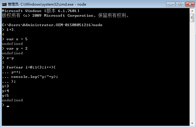 输入 node // 启动 Node 终端