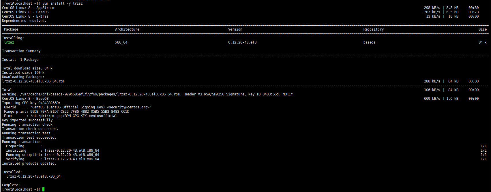 [root@localhost ~]# yum install -y lrzsz