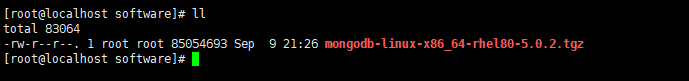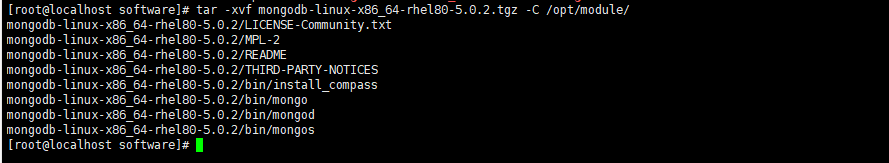 [root@localhost software]# tar -xvf mongodb-linux-x86_64-rhel80-5.0.2.tgz -C /opt/module/