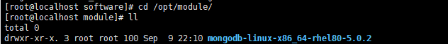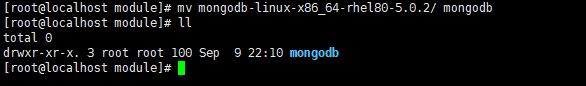 [root@localhost module]# mv mongodb-linux-x86_64-rhel80-5.0.2/ mongodb