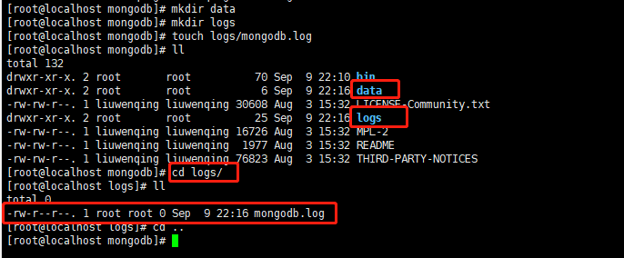 [root@localhost mongodb]# touch logs/mongodb.log