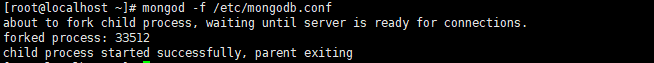 [root@localhost ~]# mongod -f /etc/mongodb.conf