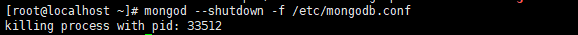 [root@localhost ~]# mongod --shutdown -f /etc/mongodb.conf