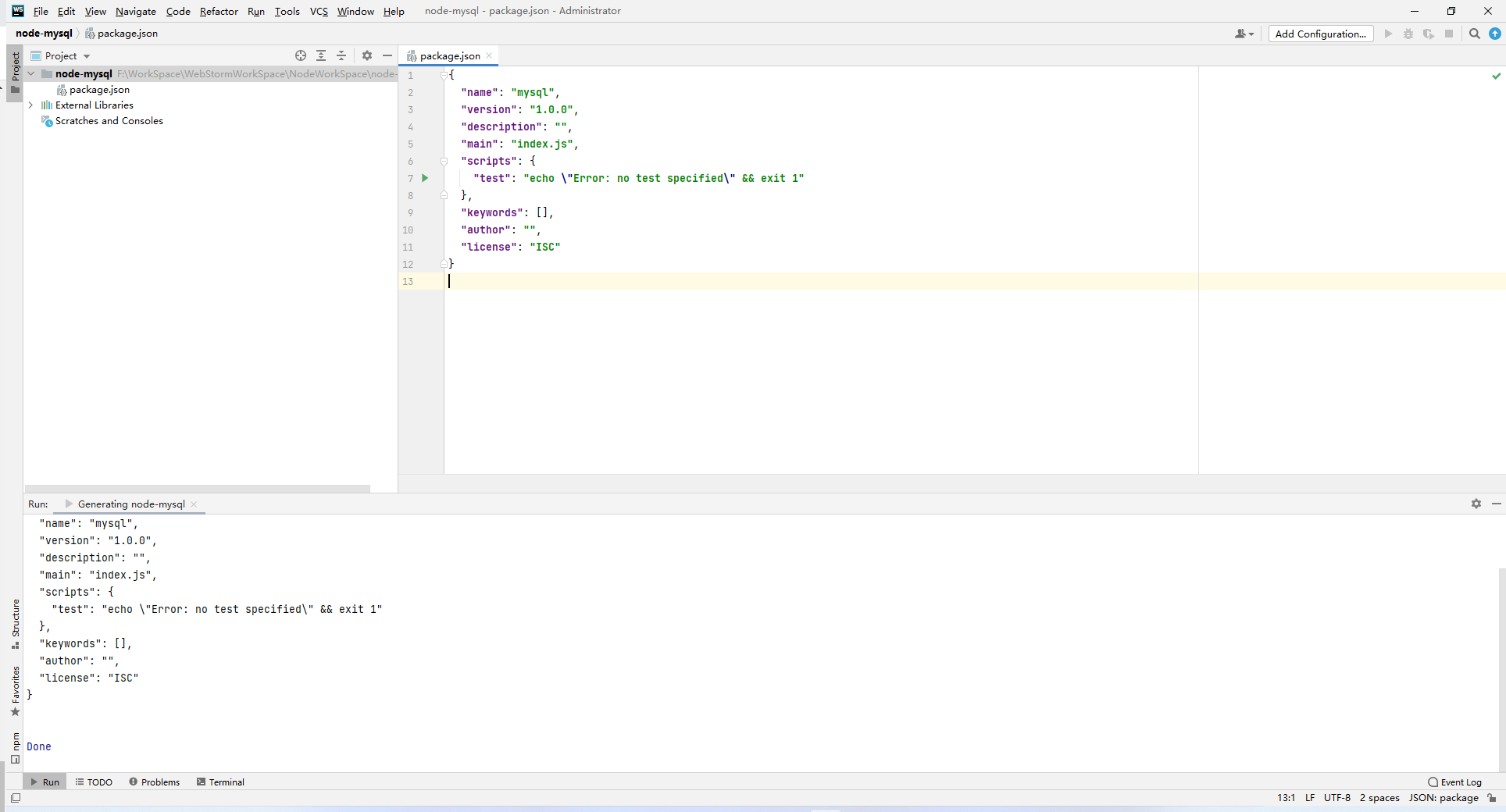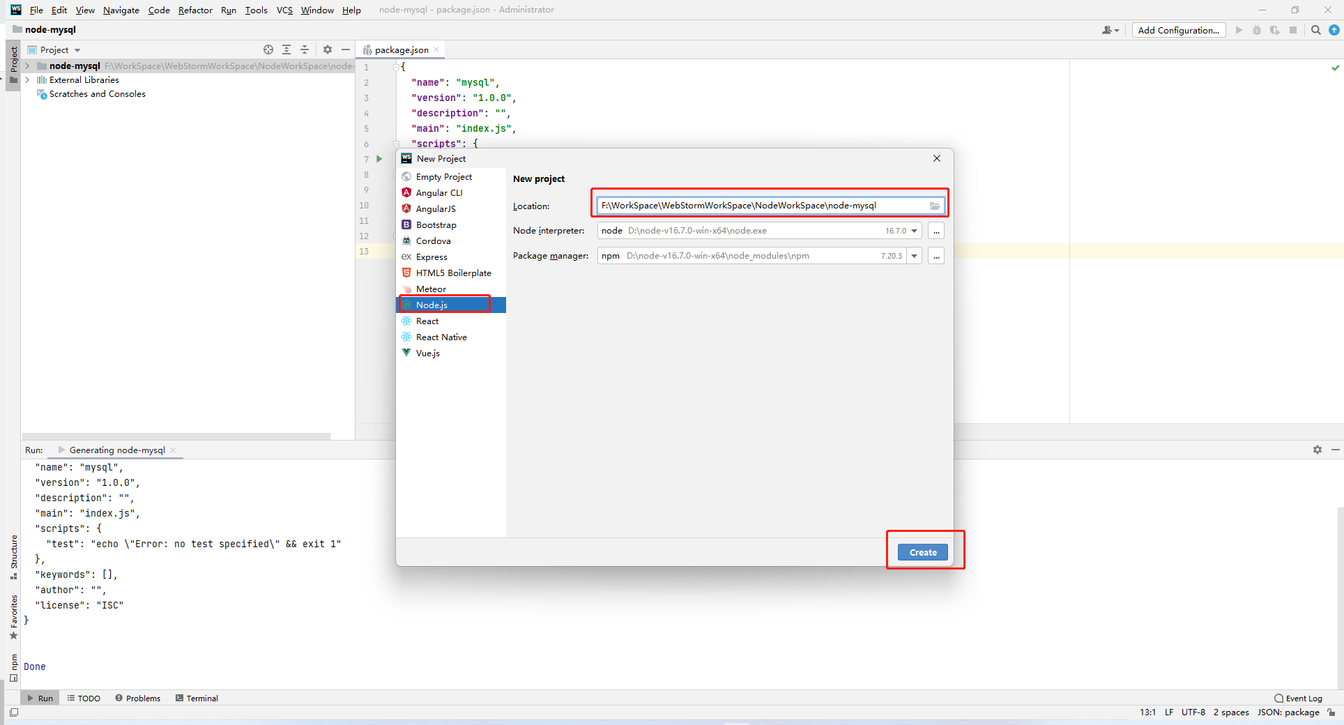 (1)使用WebStorm创建node-mysql项目