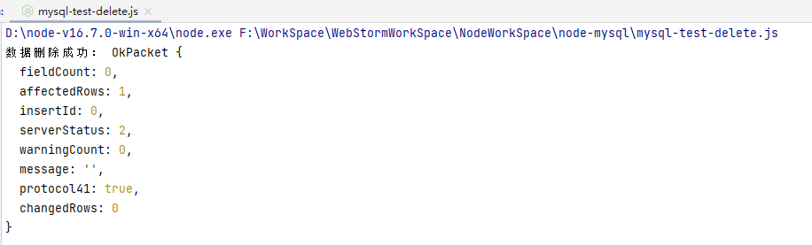 connection.query(deleteSql, deleteSqlParams, function (err, result) {