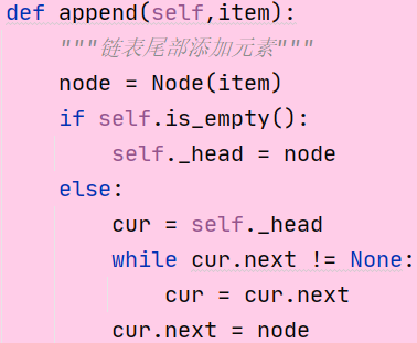 append(item) 链表尾部添加元素