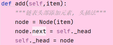 add(item) 链表头部添加元素