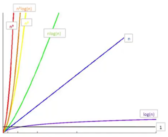 O(1) < O(logn) < O(n) < O(nlog) < O(n^2) < O(n^3) < O(2^n) < O(n!) < O(n^n)
