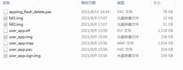 (2)编译生成文件存于:./out/appimage_debug/hex/ 咱们需要的就是user_app.pac。此文件用于下载到L610-CN上启动运行。