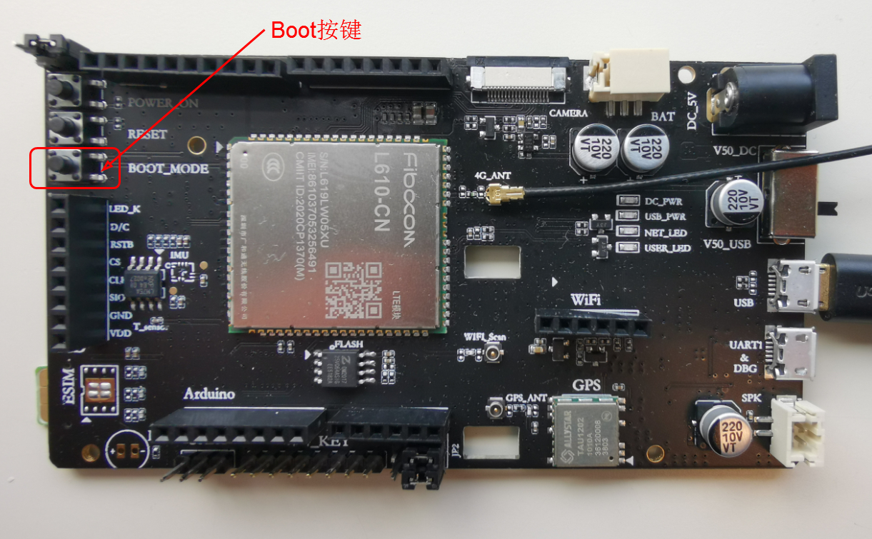 (1)本文使用FIBOCOM L610-AEVK开发板。 L610_Arduino_EVK是基于fibocom CAT1产品L610 openCPU模组的开发套件,具备 Arduino接口,可以支持Arduino接口配件板,搭配 GPS定位、WiFi、六轴传感器、温度传感器、8MB Flash、麦克风、喇叭、LCD显示屏、摄像头、2Kb EEPROM、4*4矩阵按键组使用。 这是一个非常强大的Cat.1开发板,想做Cat.1产品的开发者必备神器。   (2)如上图所示,在4G_ANT插上开发板附赠的天线。USB接口连接电脑。插入SIM卡。 注意:建议USB直接连电脑。我遇到一个问题(仅供参考):把USB接到USB分线器,此时coolwatcher软件、串口调试助手等软件,运行不正常。USB直连电脑,软件运行正常。 (3)GXHT30芯片使用L610-CN的I2C1端口,按下图所示。杜邦线连接传感器。 注意:有开发者给我留言,说前几天学完GPS定位器和Cat.1+PLC无线网关的文章,现在做I2C环境温湿度的文章,JP2是否还插着短路端子?我看了下,我这边的JP2是留空的。