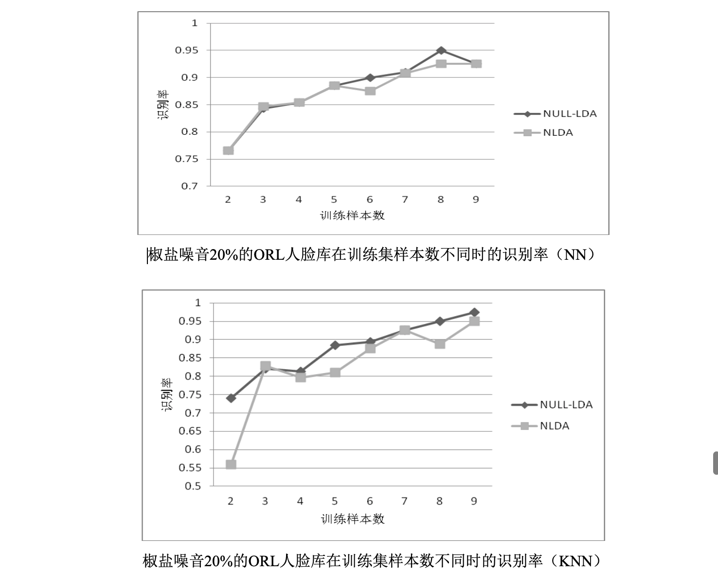 上述实验结果表明 NULL-LDA 算法在特定场景下确实具备一定的认脸识别优势。