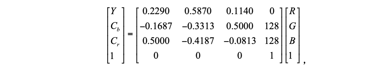 人脸检测的关键就是检测算法能否从视频或者图像中准确地区分出背景和人脸部分。目前,在复杂环境和光照背景下,还没有一种单独的人脸检测算法能够取得非常好的人脸检测效果。2015年3月,吕少东团队提出了一种多级自组织学习检测算法。首先,对人的肤色空间进行聚类转换,将基于 RGB 的肤色空间转换为基于 YCbCr 的肤色空间。基于 YCbCr 的肤色空间是经过一定程度上的特征提取的,其中原来大量的不相关的背景信息被剔除掉。基于 RGB 的肤色空间与基于 YCbCr 的肤色空间的转换关系如下面的公式所示。