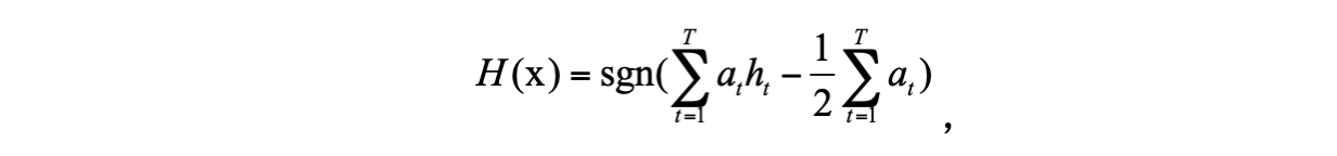 最后,通过循环递归,由多个弱分类器得到最终的强分类器: