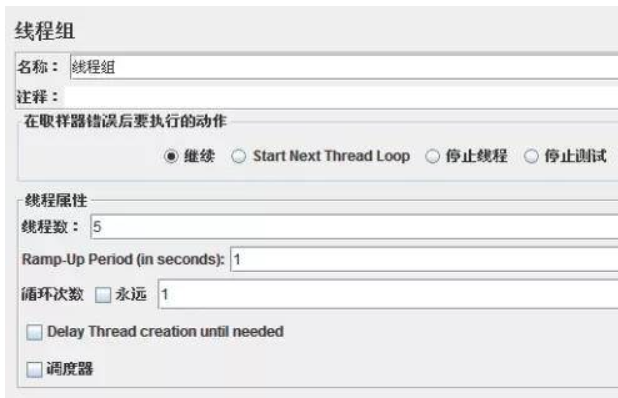 这个就是我们通常添加运行的线程。通俗的讲一个线程组,,可以看做一个虚拟用户组,线程组中的每个线程都可以理解为一个虚拟用户。线程组中包含的线程数量在测试执行过程中是不会发生改变的。