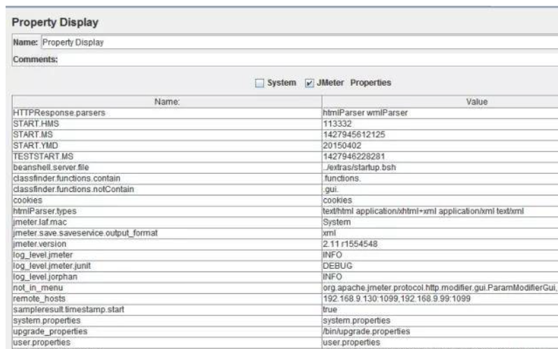 1、工作台-非测试元件-Property Display,此元件相当于是jmeter.properties的GUI。