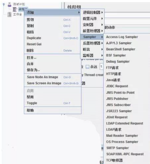 取样器(Sampler)是性能测试中向服务器发送请求,记录响应信息,记录响应时间的最小单元,JMeter 原生支持多种不同的sampler , 如 HTTP Request Sampler 、 FTP Request Sampler 、TCP Request Sampler 、 JDBC Request Sampler 等,每一种不同类型的 sampler 可以根据设置的参数向服务器发出不同类型的请求。
