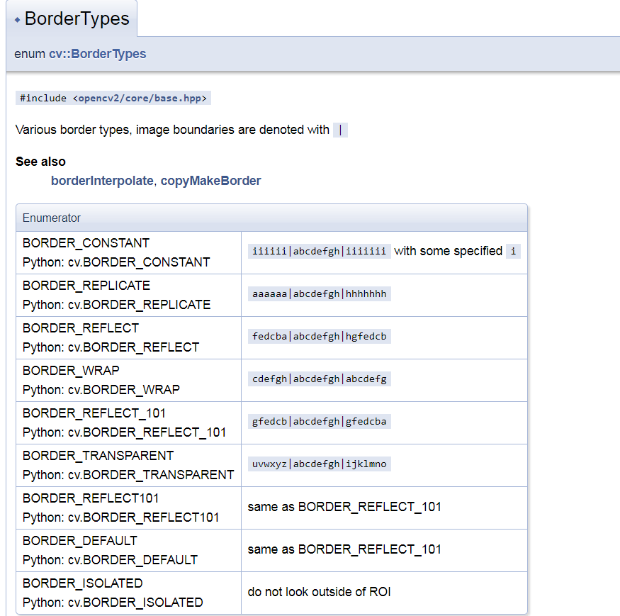 该部分内容涉及边缘处理,翻阅手册过程找到的说明指向 BorderTypes。翻阅了一下,依旧是有些超纲,可以先记录下相关内容,日后在进行回顾,参考地址。
