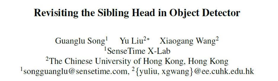 论文标题:Revisiting the Sibling Head in Object Detector