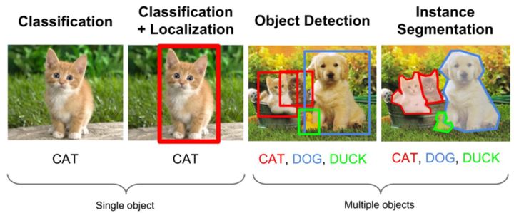 (1)分类-Classification:解决“是什么?”的问题,即给定一张图片或一段视频判断里面包含什么类别的目标。