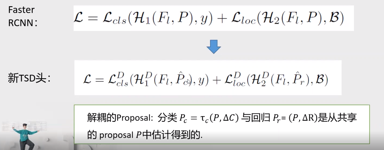 TSD的全称为task-aware spatial disentanglement,即任务感知空间解缠。TSD本质上是将分类任务和定位任务从空间上分别解析,基于经典的sibling head中的原始proposal,为两个任务分别生成两个独立的proposals,这样允许两个任务在不影响彼此的情况下自适应地找到空间中的最佳位置。