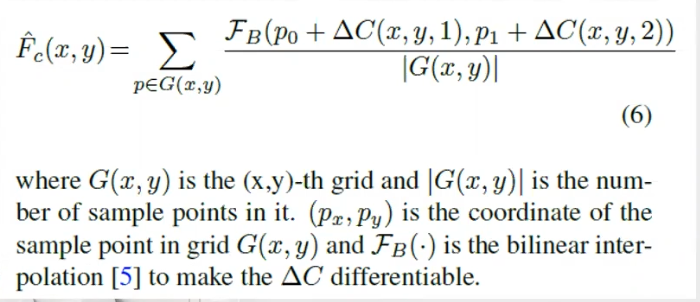 ΔC也由三层全连接网络回归得到,但与FR共享第一层权重。Fc为每个proposal P预测k*k个偏移,生成一个形变的不规则的proposal Pc.