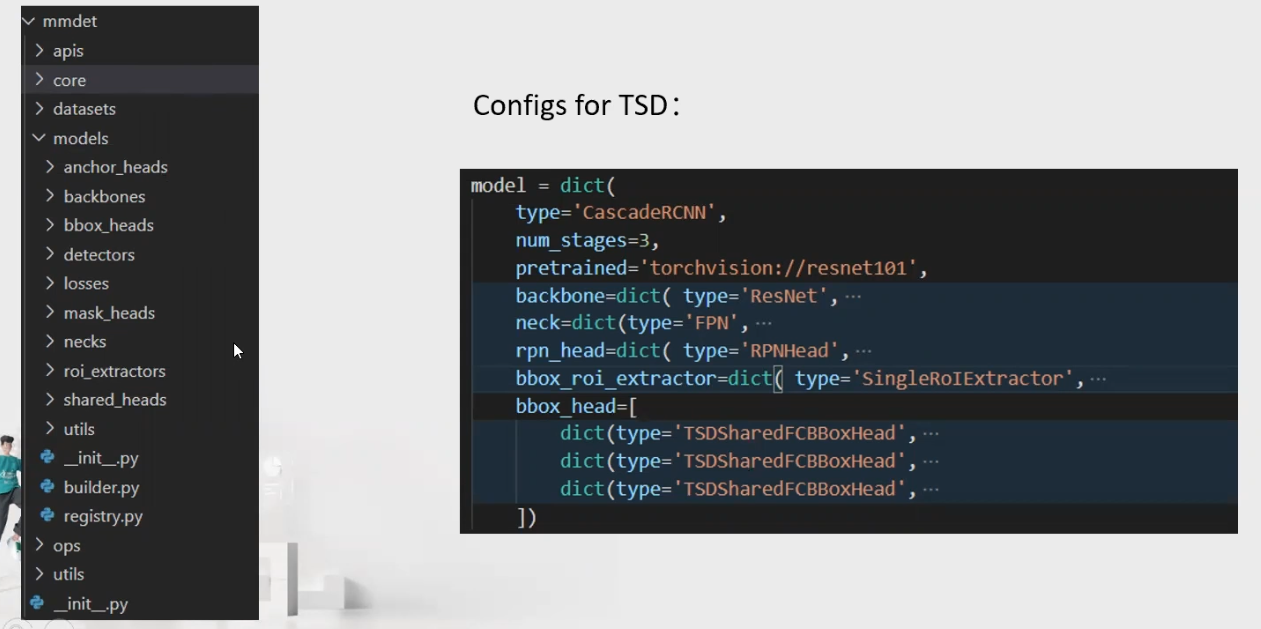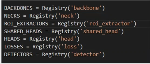 ·模型: mmdet中每个模块按backbone, neck, roi_extractor, shared_head, head, loss和detector划分,使用装饰器register。
