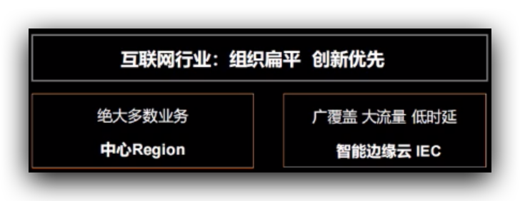 在华为云边缘计算形态中,互联网行业,主要表现为组织扁平,创新优先,其关注点绝大多数业务在中心Region,具有广覆盖、大流量、低时延等特点。