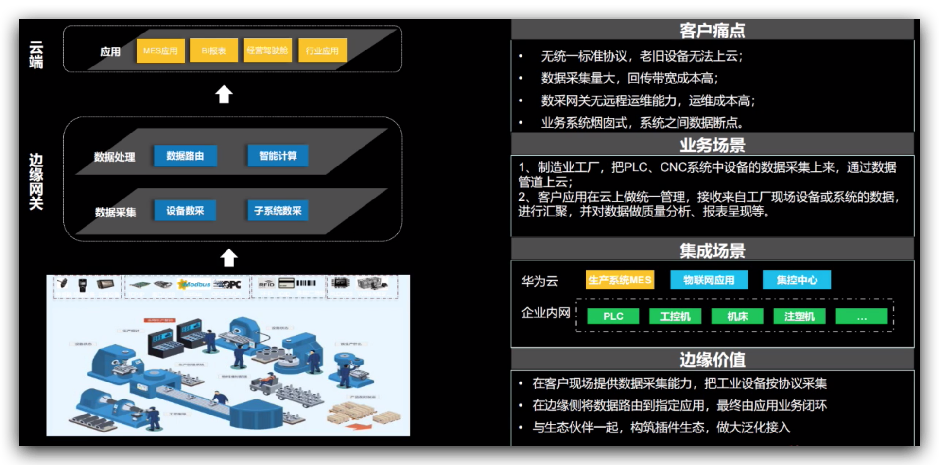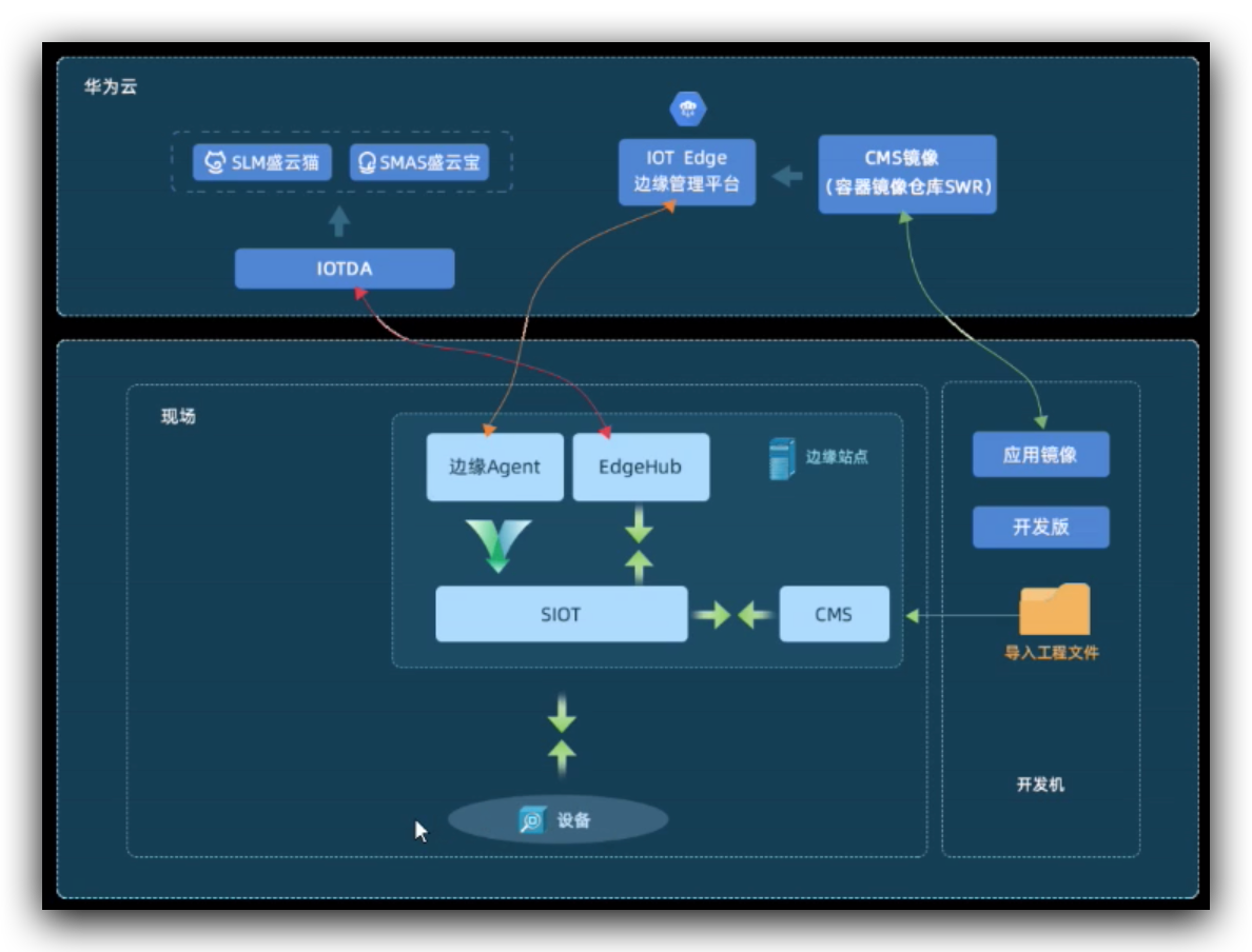 • 工业网关和盛原成SIOT都可以直接对接华为边缘loT Edge和华为IoTDA;
