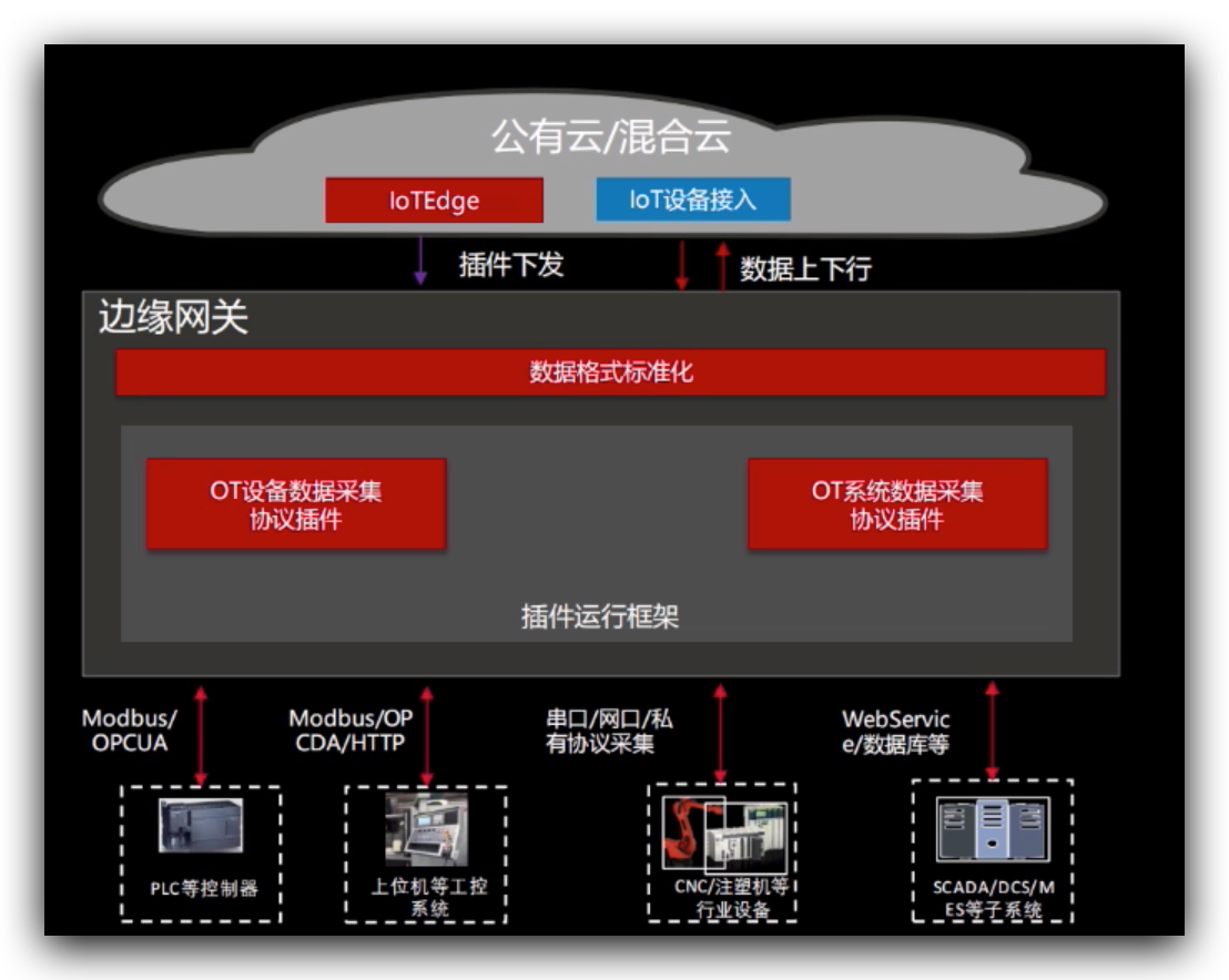 插件部署到边缘节点,现场设备按协议接入边缘节点,解析后转换成标准数据上下行。