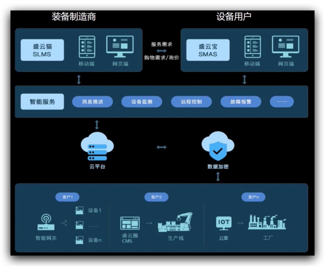 • 客户应用在云上做统一管理,接受来自工厂现场设备或系统的数据,进行汇聚,并对数据做质量分析、报表呈现等。