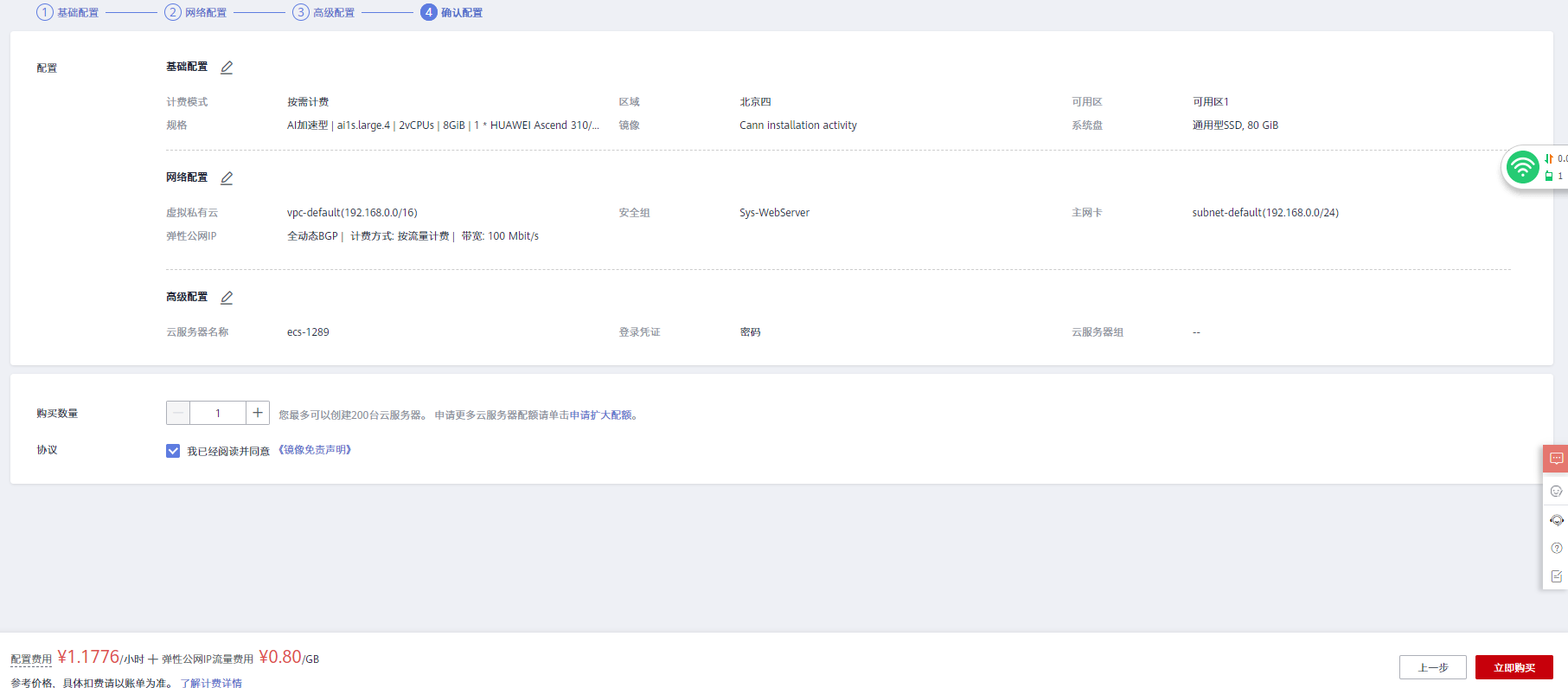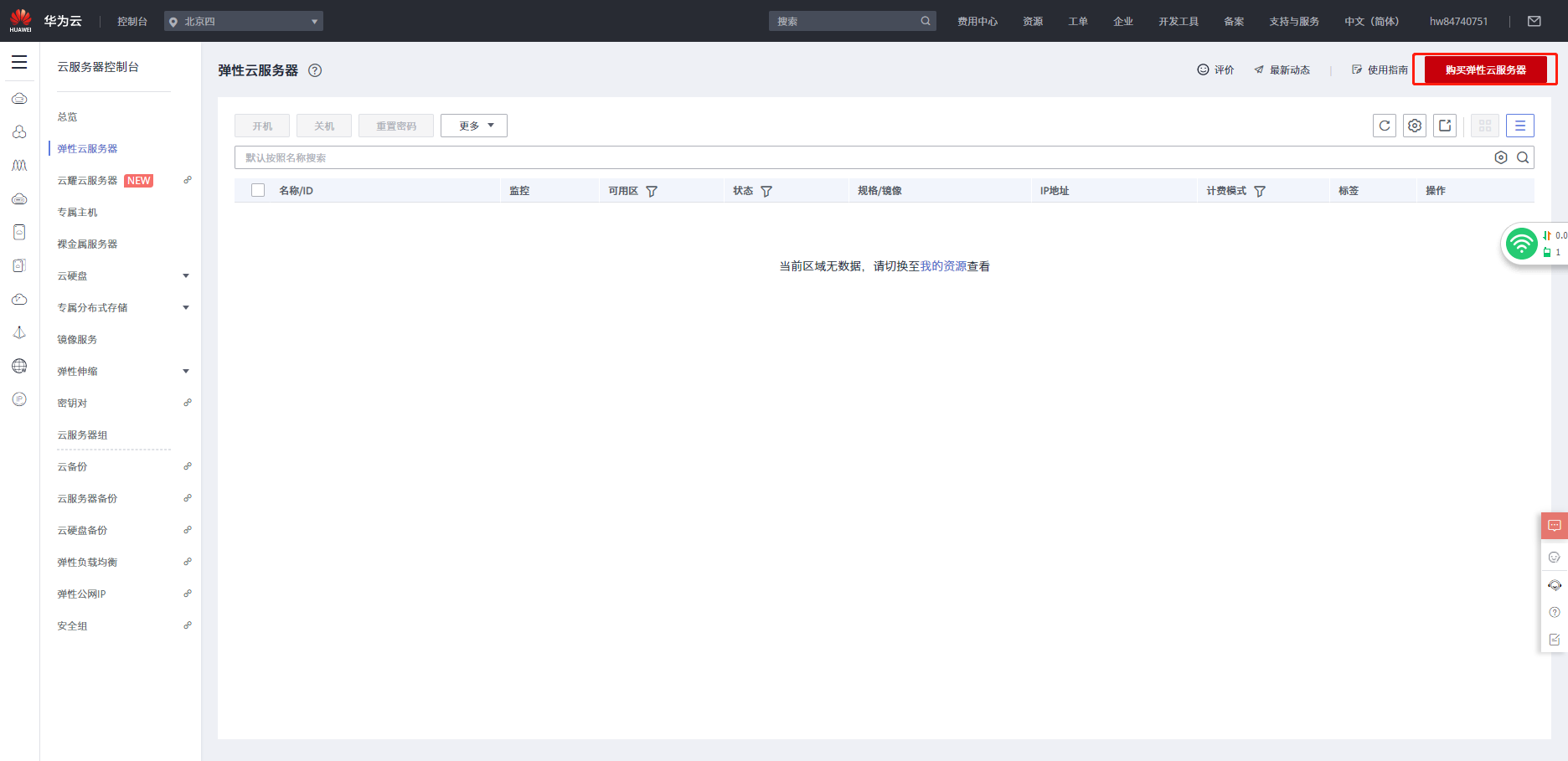 打开控制台-弹性云服务器-选择购买弹性云服务器