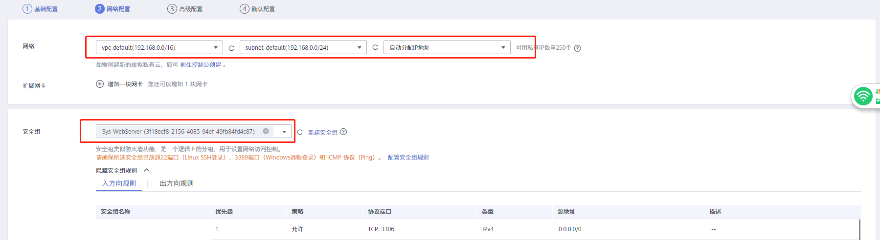 网络选择默认vpc