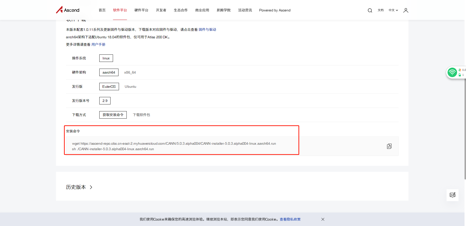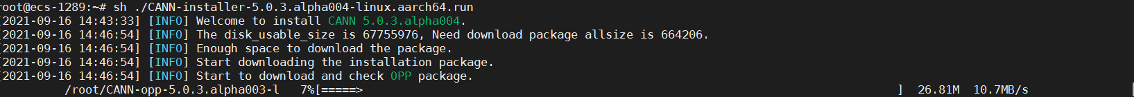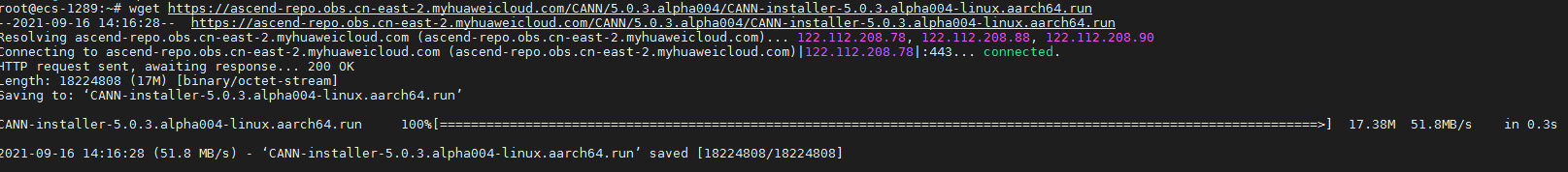 wget https://ascend-repo.obs.cn-east-2.myhuaweicloud.com/CANN/5.0.3.alpha004/CANN-installer-5.0.3.alpha004-linux.aarch64.run