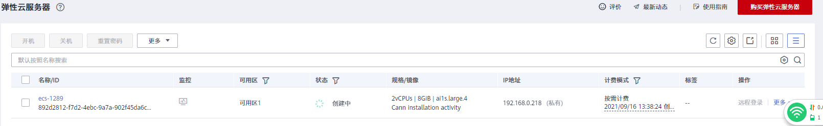 之后点击返回云服务器列表 等待云服务器创建完成
