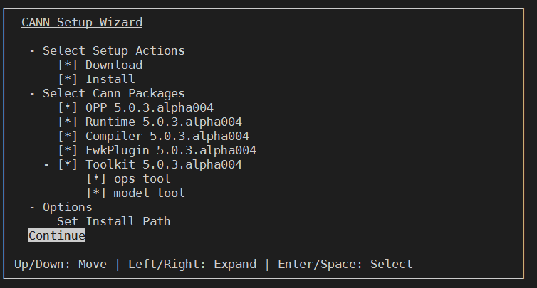 sh ./CANN-installer-5.0.3.alpha004-linux.aarch64.run
