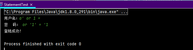 即使用PreparedStatement成功的解决了SQL注入问题。