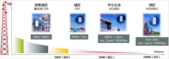 那么在家庭领域的解决方案就在于使用上文提到过的5GCPE,并且在不同的场景之下可以使用不同的CPE。比方说在密集的城区可以提供毫米波CPE,在城区普通的环境中会使用普通的CPE等等,为不同的客户提供不同类型的CPE以满足其对于网络的需求。