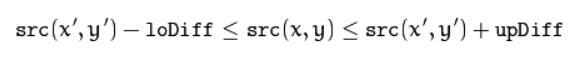 当为CV_FLOODFILL_FIXED_RANGE 时,待处理的像素点与种子点作比较,如果满足(s – loDiff, s + upDiff)之间(s 为种子点像素值),则填充;